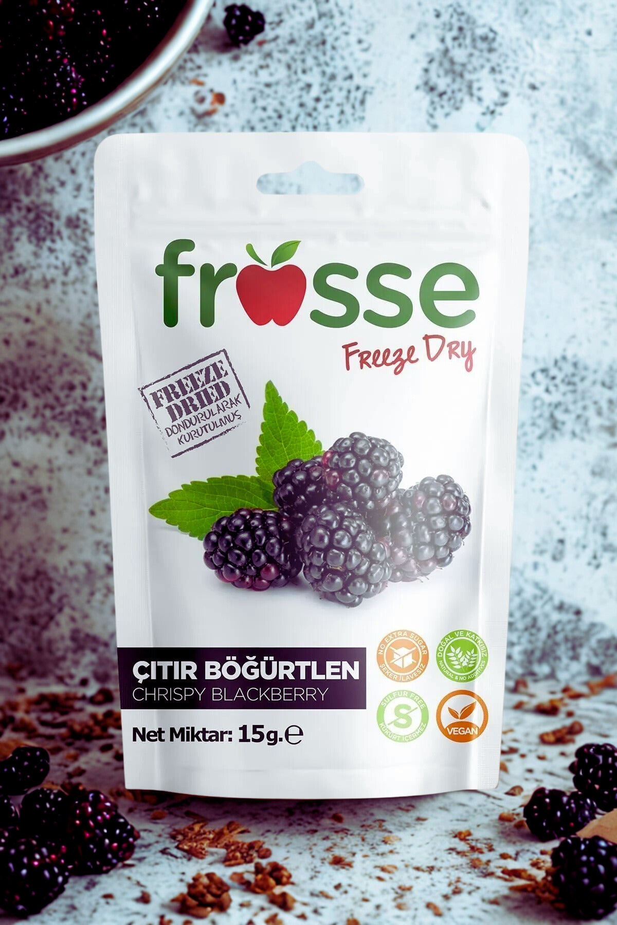 100% natural freeze dried blackberries in a convenient 10x15g pack. No added sugar, no preservatives. Vegan, gluten-free, and fiber-rich. Its light, crispy texture and sweet-tart flavor make it the perfect healthy snack for on-the-go, school, work, or between meals.